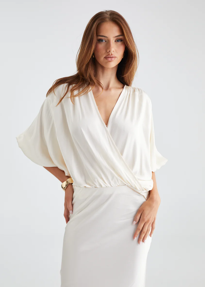 Cultivate understated elegance with the Alara Top in cream. Pair it with tailored skirts for a refined ensemble, or wear it with denim for a sophisticated everyday look.