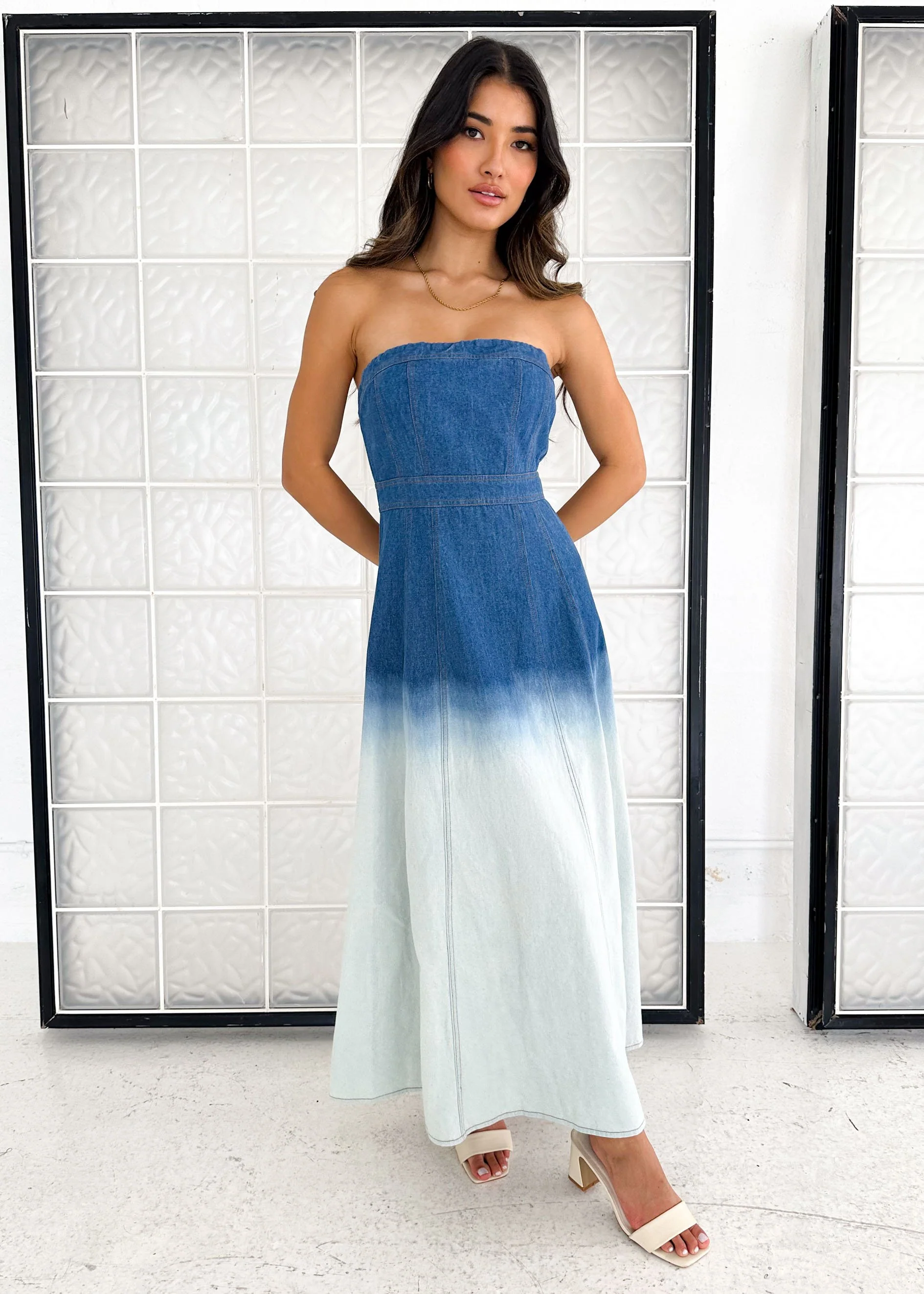 Emina Strapless Denim Maxi Dress - Washed Blue