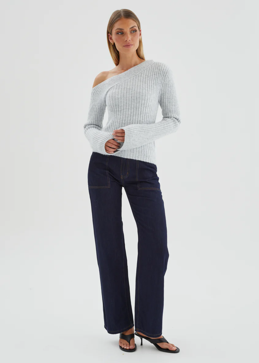 Lily One Shoulder Knit Top - Grey